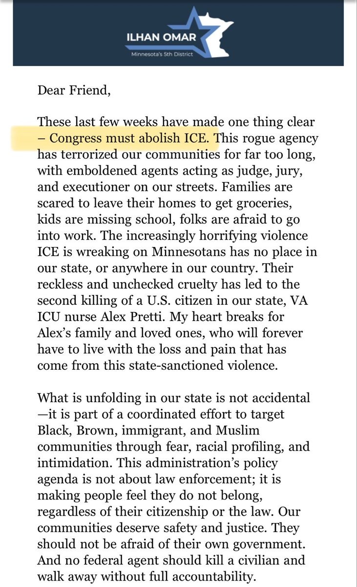 U.S Rep. Ilhan Omar sends out email calling on Congress to “abolish ICE,” says the federal law enforcement agency wreaks havoc in Minnesota.