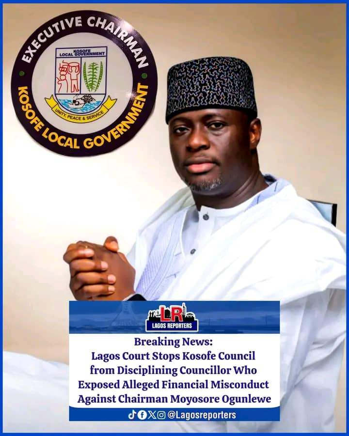 A Lagos State High Court sitting in Yaba has restrained the Chairman of Kosofe Local Government, Moyosore Ogunlewe, and the leadership of the council’s legislative arm from taking disciplinary action against a councillor representing Anthony Village, David Samuel, over his alleged role in exposing financial impropriety within the council.