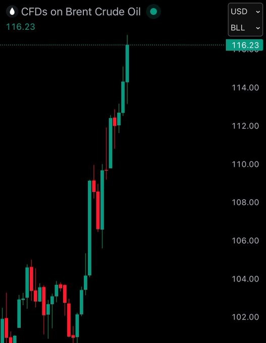 Brent Crude Oil Surges To $116 Following Strikes On Oil Refineries And Gas Plants In The Middle East