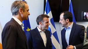 ‘Together with Cypriot President Nikos Christodoulides and Greek Prime Minister Kyriákos Mitsotakis, we are working for security around Cyprus, in the Eastern Mediterranean. France stands in solidarity with its friends and allies in the region targeted by missiles and drones.