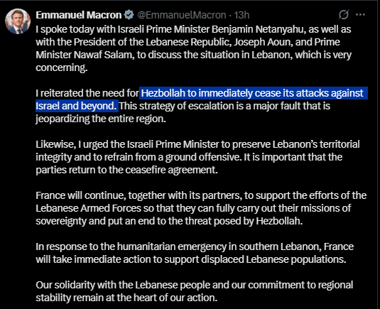 France To Support The Lebanese Armed Forces To Put An End To Threat Posed By Hezbollah, As President Macron Warns Shiite Muslim political party to Cease Attacks Against Israel.