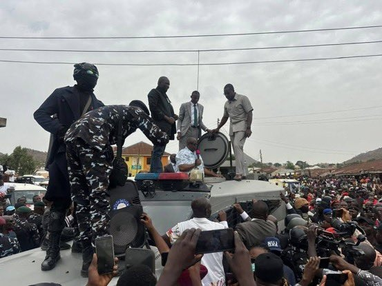 Plateau State Governor Condolence Visits To Angwan Rukuba Community After Terrorist Open Fires On Residents, Killed More Than 10, Injured Several, Caleb Mutfwang Gives Speech In An Armor Tank.