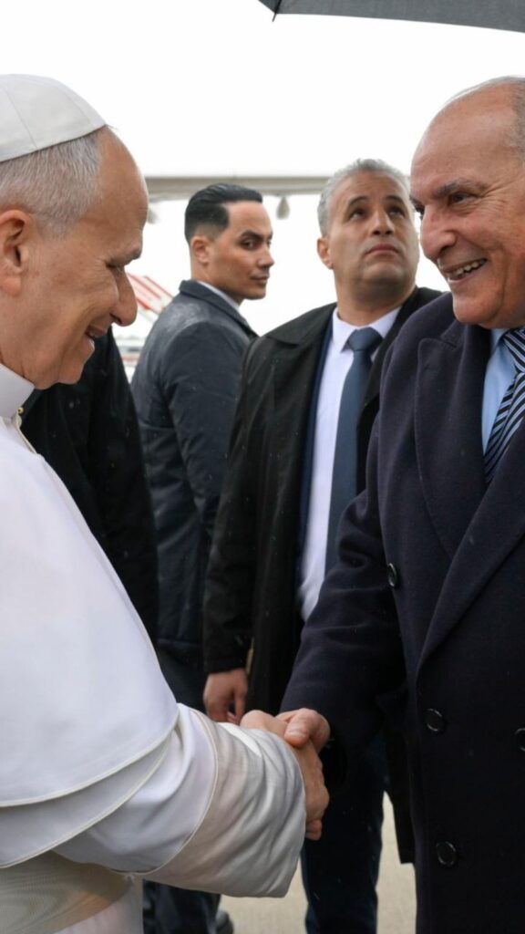 News20 by thesubstancenewsApril 14, 2026April 14, 2026 Pope Leo arrived in Annaba and, despite the rain, was welcomed by children in traditional dress with flowers as well as the Bishop of Constantine-Hippo and the Algerian ministers of foreign affairs and culture.