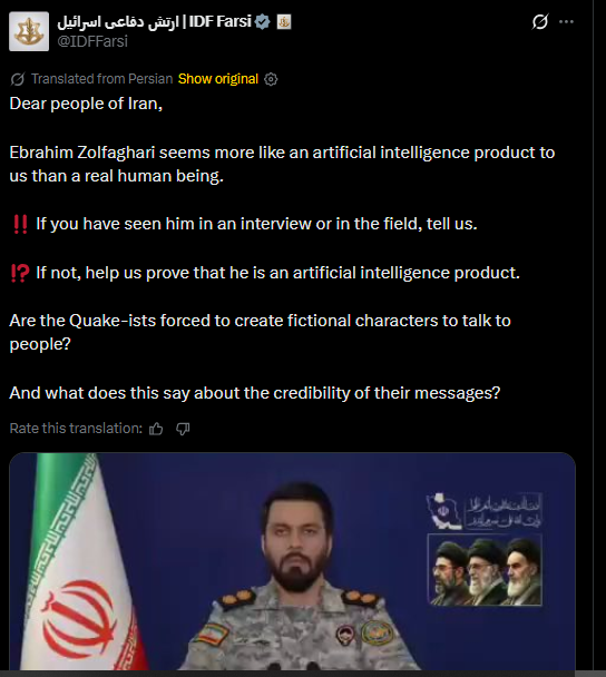 “Ebrahim Zolfaghari seems more like an artificial intelligence product to us than a real human being.