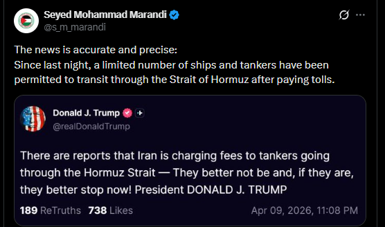 NewsIranian-American Academic Seyed Mohammad Marandi Confirms Tolls Payment At The Strait Of Hormuz00 by thesubstancenewsApril 10, 2026April 10, 2026