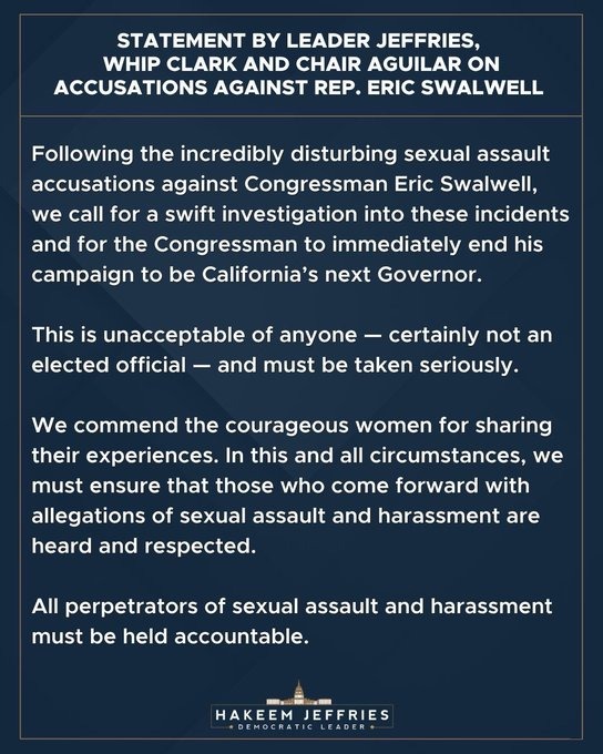 Minority Leader Of The U.S House Of Representatives Releases Statement On The Accusations Against Rep. Eric Swalwell.