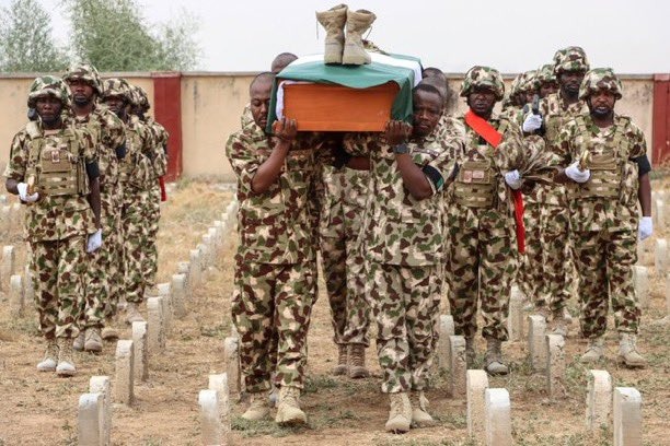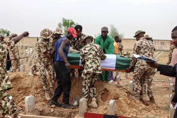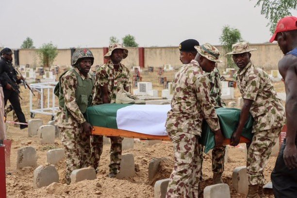 Photo News: The Burial Of Brigadier General Oseni Omoh Braimah, Commander Of The 29 Task Force Brigade (Operation Hadin Kai), And Other Troops Killed By Insurgent Attacks In Maiduguri On April 15, 2026.