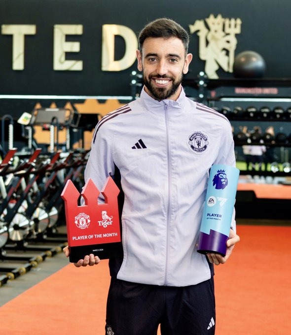 The Manchester United captain Bruno Fernandes claimed both Premier League Player of the Month and club Player of the Month for March, matching Cristiano Ronaldo’s record of six PL honors for a United player.